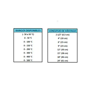 • Termómetro para agua, aire, aceite, vapor, hornos, etc.